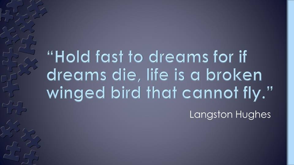 “Hold fast to dreams, for if dreams die, life is a broken-winged bird that cannot fly.” – Langston Hughes